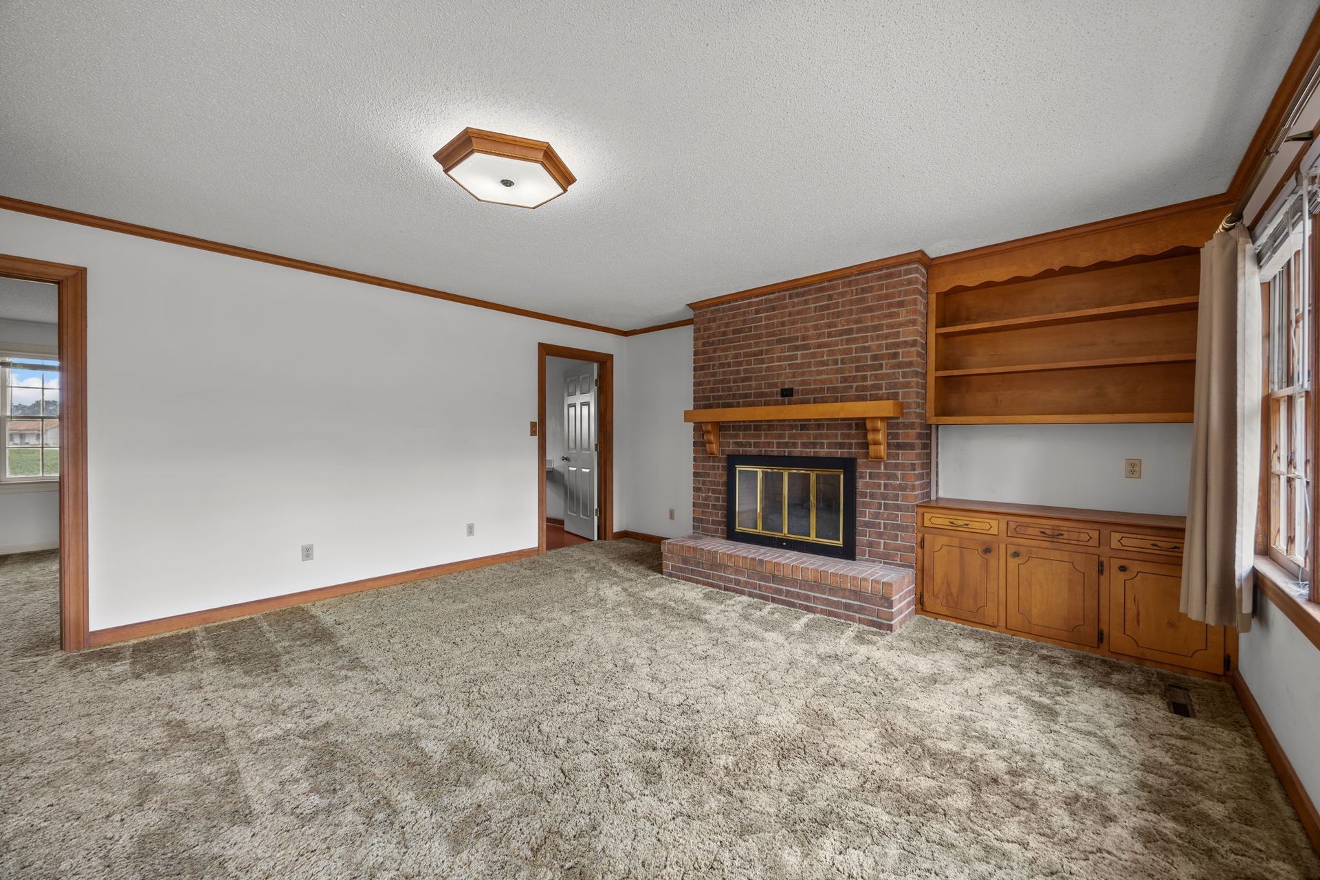 Brick ranch in a serene setting with spacious bedrooms and lots of closet space, covered front porch, patio and carport for two. Formal dining room, laundry room and family room with fireplace and built-ins.